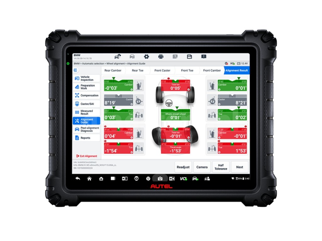 - Interfejs oprogramowania MaxiSYS monitoruje i wyświetla pomiary wyrównania