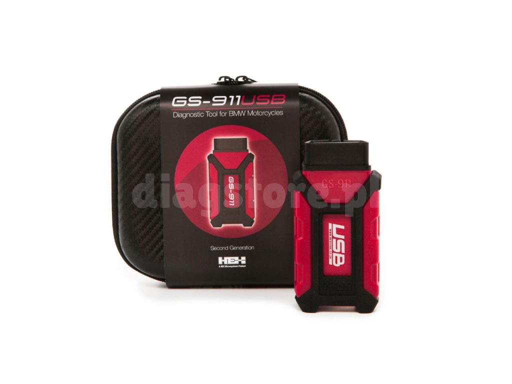 GS-911 USB to nowa generacja popularnego urządzenia diagnostycznego BMW do motocykli. Obsługuje najnowszą platformę K001, która jest używana w modelach K1600GT/GTL, R1200GS LC, R1200GS Adv ALC, R1200GS Adv ALC, R1200RT LC, S1000R, C-evolution i innych. Podobnie jak w poprzedniej generacji, funkcje diagnostyczne są podzielone na dwie części – Awaryjne i Serwisowe. Urządzenie diagnostyczne można podłączyć do komputera za pomocą kabla USB. Model GS911 jest wyposażony w złącze OBD-II. Aby podłączyć motocykle z okrągłym 10-pinowym gniazdem, należy zakupić adapter lub wybrać model z 10-pinowym złączem.