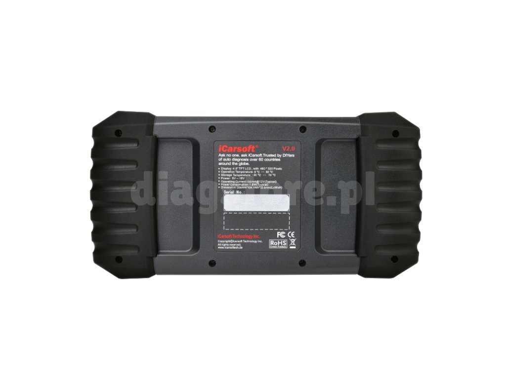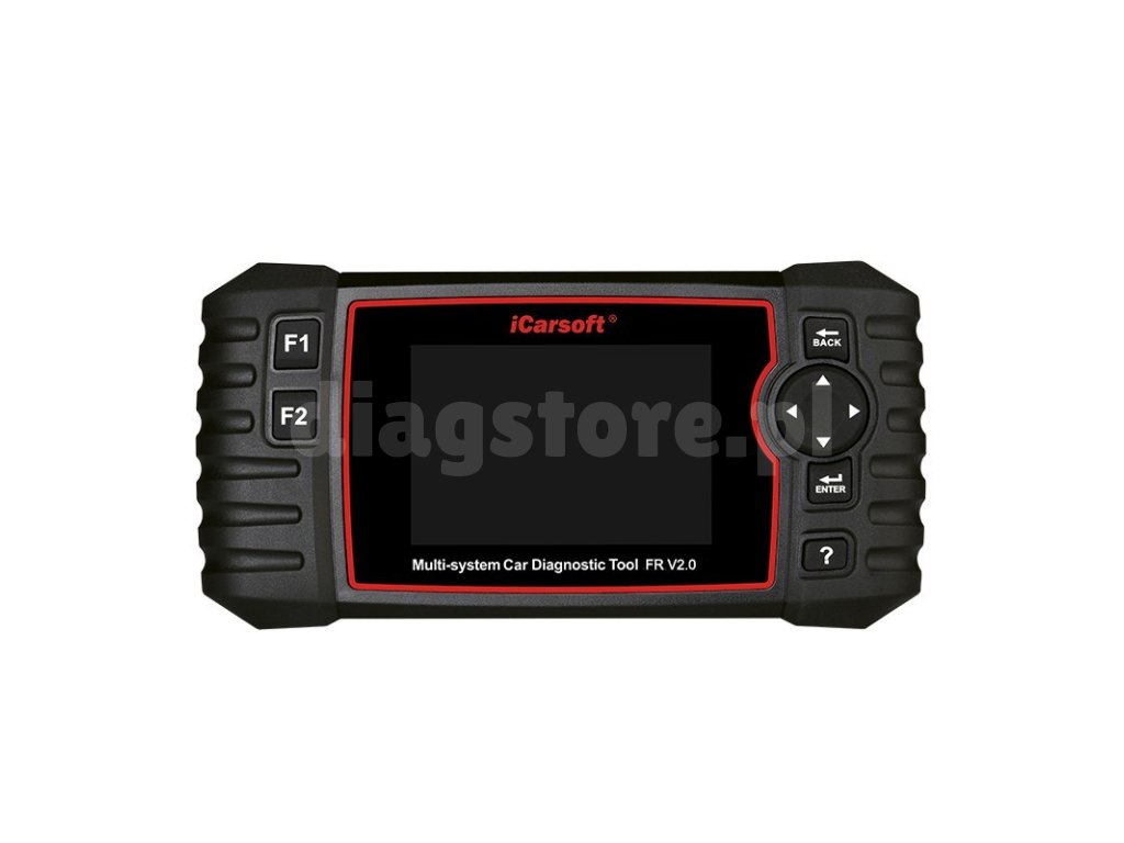 iCarsoft FR V2.0 to narzędzie diagnostyczne umożliwiające połączenie ze wszystkimi jednostkami sterującymi pojazdów marek Alfa Romeo, Citroen, Dacia, Fiat, Peugeot, Renault . Urządzenie jest wyposażone w 4-calowy kolorowy ekran i jest gotowe do użycia. Aktualizacje oprogramowania urządzenia są całkowicie bezpłatne i odbywają się za pośrednictwem komputera (kabel USB w zestawie). Urządzenie obsługuje wiele języków. Obsługiwane są samochody wyprodukowane w latach 1996–2016. Skaner iCarsoft umożliwia szczegółową diagnostykę wszystkich podzespołów, a także oferuje 6 funkcji serwisowych, takich jak resetowanie okresów między przeglądami, regeneracja filtra cząstek stałych, diagnostyka i zwalnianie elektrycznego hamulca postojowego, rejestracja akumulatora i wiele innych. Urządzenie podłącza się do samochodu za pomocą kabla OBD-II.