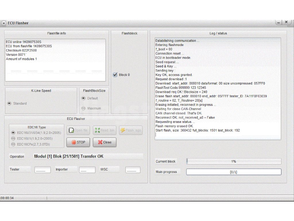 - ECU Flash – aktualizacja oprogramowania układowego jednostki sterującej